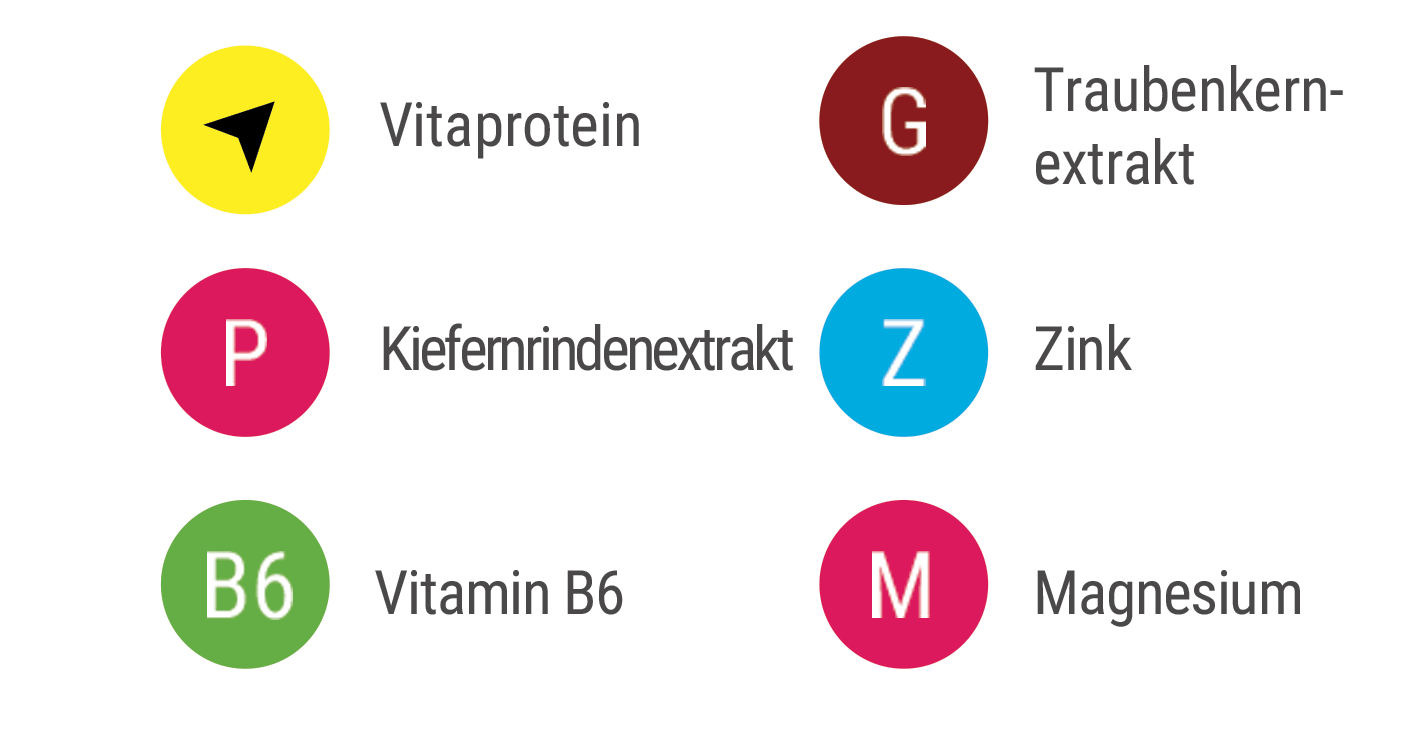 Einer der Inhaltsstoffe von Viproactive Pinea ist Magnesium, welches die Muskelfunktion fördert, Müdigkeit und Erschöpfung entgegenwirkt und zur Proteinsynthese, zum Elektrolythaushalt und zur normalen psychischen Funktion beiträgt. Ein weiterer Inhaltsstoff ist Zink, das für eine normale Zellteilung und einen normalen Stoffwechsel der Makronährstoffe sorgt und die Zellen vor oxidativem Stress schützt. Das Vitamin B6 in unserer Formel fördert den Energiestoffwechsel, das Nervensystem und das Immunsystem. Es hilft auch, die Hormonaktivität zu regulieren.