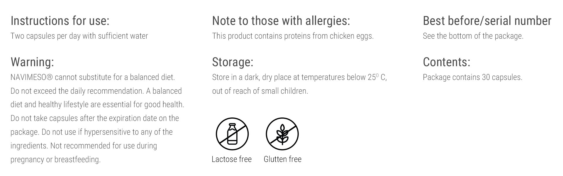 We understand your need and bring you a key to easing your concern about aging skin. Navimeso® promises a more elastic skin that will also be softer, brighter, and better protected from external influences. It supports: