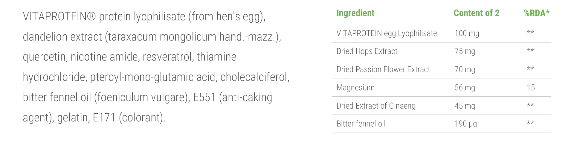 The key mineral in Viproactive® Relax is magnesium, which facilitates muscle, nervous-system and normal psychological functioning, and reduces tiredness and fatigue. Magnesium also contributes to energy-yielding metabolism, protein synthesis and electrolyte balance.